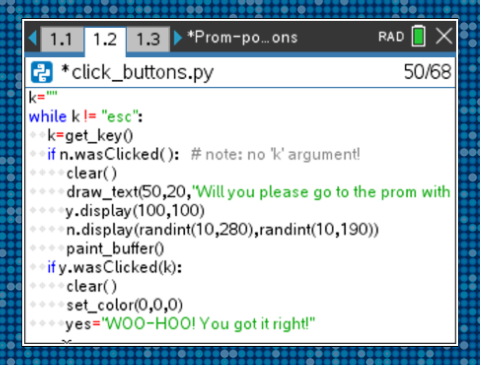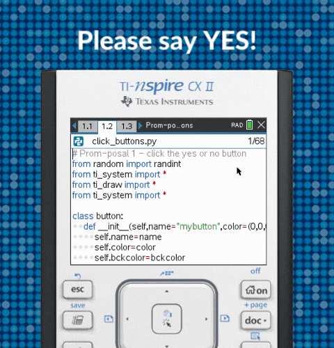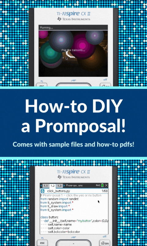 It’s prom season, and it can be hard to keep your students from daydreaming about prom night. How about an activity that will grab their attention while you sneak in some programming skills? Plus, be sure to encourage your students to participate in our TI Promposal Contest. It will provide extra motivation for your students to push their creativity. Encourage your students to enter for a chance to win some cash for their prom night!*