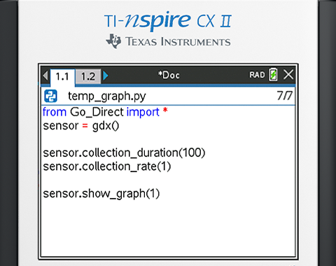 TI’s Go Direct Python module offers science teachers the ability to have students use TI graphing calculators to collect data from Vernier Go Direct sensors. Sample programs are readily available, so no coding is required.