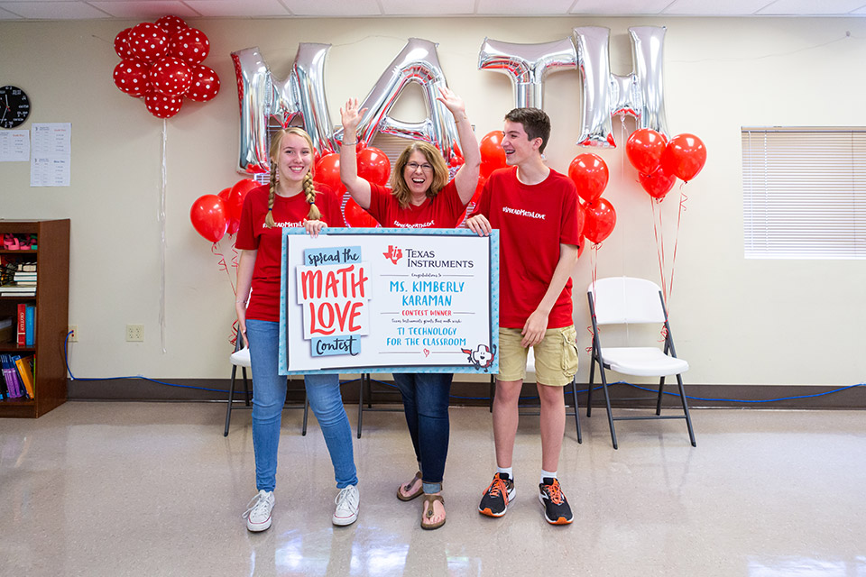 Kimberly Karaman received a teacher pack of TI-84 Plus CE graphing calculators for her classroom. That is what her son, Connor, chose as her prize.“She does so much for us, to be able to finally give back to her, and give her something that will make her life easier, rather than her giving us something that makes our lives easier, is fun,” said Lauryn. As her prize, Karaman won a teacher pack of TI-84 Plus CE graphing calculators so that all of her students can work on the same platform at the same time. “Within one class, I can have four completely different levels of students. Through this opportunity they are going to be able to shine, and that’s really the bottom line.”