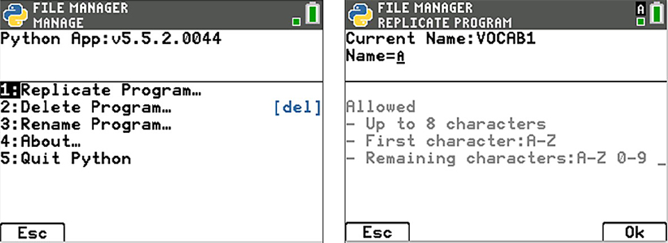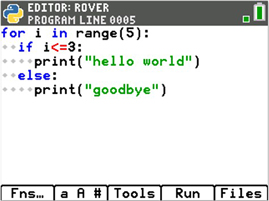 Don’t stress; everything is menu driven. A great place to start learning the basics of programming with Python is TI Codes: Python.