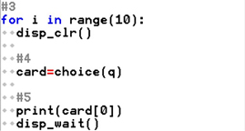 #3. Add a loop to practice 10 times. Clear the screen. #4. Pick a random card from the deck. #5. Print the question. Wait for the student to press [clear].